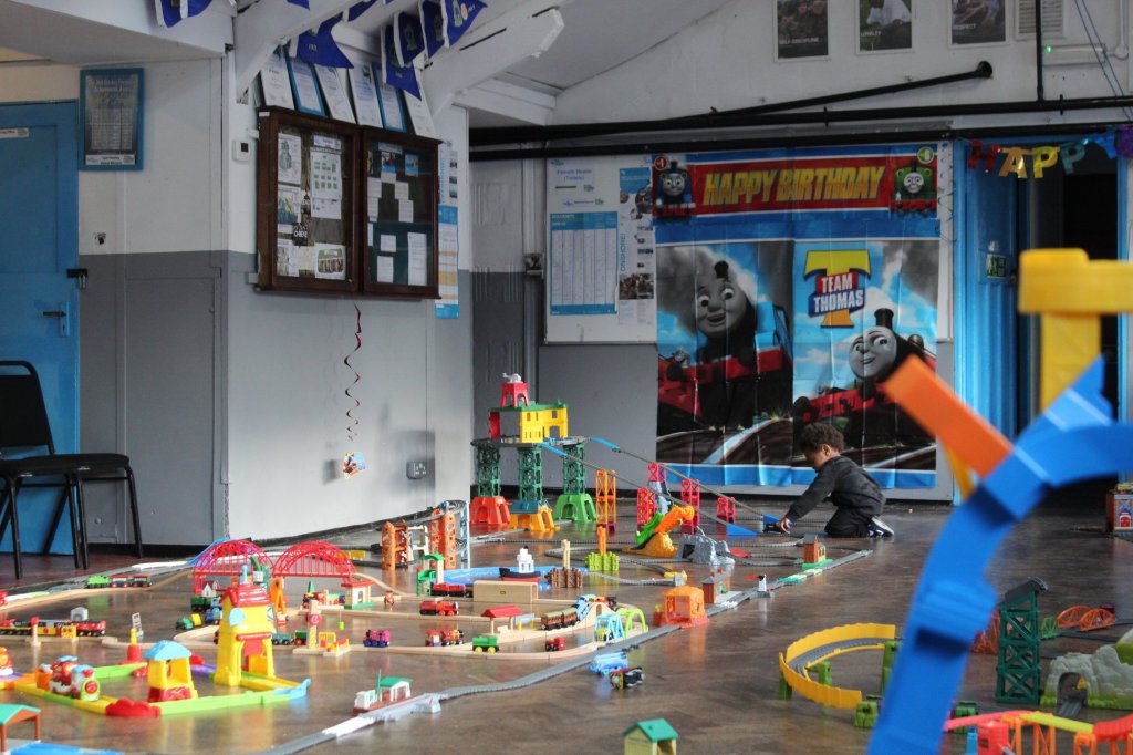 We can set up in most places including your home/garden or a hired hall. The space for tracks it the most important thing – we can adapt set up to suit the venue.